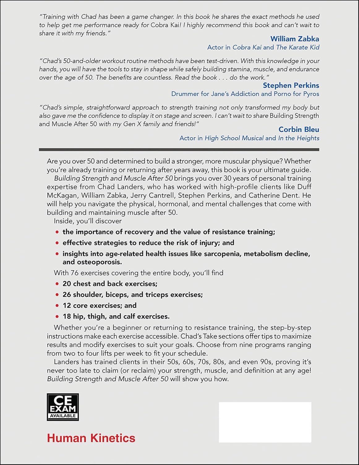 With Building Strength and Muscle After 50, you can benefit from over 30 years of personal training experience from Chad Landers, who has trained high-profile clients such as Duff McKagan, William Zabka, Jerry Cantrell, Stephen Perkins, and Catherine Dent. He will guide you through the physical, hormonal, and mental hurdles that trainees over age 50 encounter in their efforts to build and maintain muscle and definition.